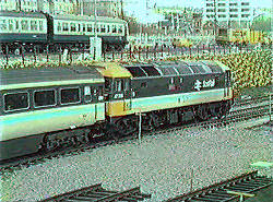 | Edinburgh Aberdeen services also began to be operated by push pull units, the Edinburgh trains often having Mk 2d coaches in the consist. Mk 1 full brakes (BGs) were outshopped in ScotRail livery as seen on this train propelled by a filthy Class 47 - VIDEO and VIDEO CAPTURES Malcolm McCrow | |||||