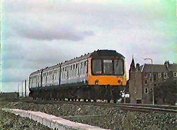 | ScotRail push pull at Wormit in 1987. In 2015 foliage has completely obscured this view of the Tay Bridge - VIDEO and VIDEO CAPTURES Malcolm McCrow | |||||