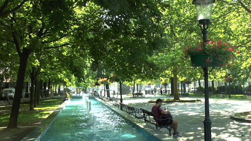 | Beyond the tree-lined fountains of the square is the Slovak National Theatre - VIDEO CAPTURES Malcolm McCrow | |||