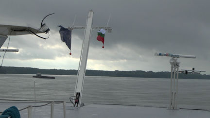 | It was shortly after 9 pm, with the Danube reflecting the last rays of the setting sun, when BELLEJOUR left Rousse for Cernavoda in Romania - VIDEO CAPTURES Malcolm McCrow | |||