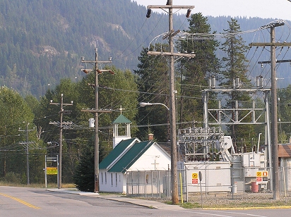 | A diminutive church in Salmo (left); Another Greyhound Agent and another out-of-town stop beyond Kelowna (right) - PHOTOs Malcolm McCrow | |