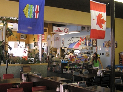 | Some of this journey was done by car before repeating it in its entirety on a coach journey from Calgary to Vancouver, stopping off at Nelson and Kelowna along the way. The coach makes stops at the principal towns and at some of them there is a short break which gives a chance for photography. But a car is essential if you want to spend longer in any of the places. Cinema goers may recognize the Java Shop in Fort Macleod which features in Brokeback Mountain. Passengers have time there to get a snack in the Java Shop which is the Greyhound Agent and at which the coach stops for a short while. The opening scenes of the film also show Cowley (the next stop) purporting to be Signal, Wyoming. But you have no opportunity there to leave the coach. Heads-Smashed-In Buffalo Jump is not on the Greyhound route and you need a car. One thing to remember if you intend breaking your coach journey along the way is that there may not be another coach for 24 hours. | |