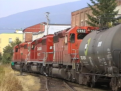 | Late in the afternoon patience was rewarded when a manifest freight headed by three SD40-2s arrived - VIDEO CAPTUREs Malcolm McCrow | |