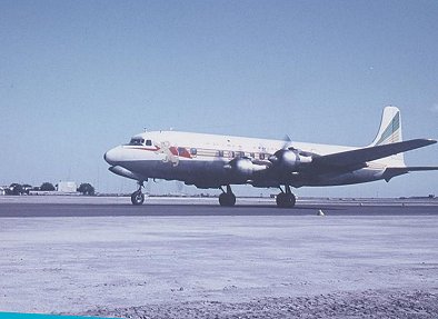 An Aden Airways DC3 sports its BOAC look alike livery (left). These DC3s were a common sight at Nairobi Embakasi on Sunday mornings in the late 50s. An Ethiopian Airways DC6B (right). PHOTOs Ronald Davison |