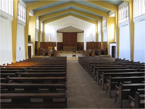 | The walls of the chapel were originally a mushroom colour and for several years only the front few rows were equipped with proper pews. The original gym has been converted into a Roman Catholic chapel and the old armoury into a mosque - PHOTOs Glen Smith | |||