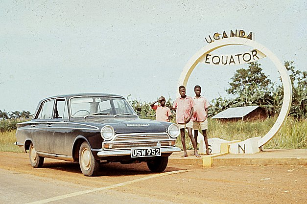 Uganda registered Ford Cortina on the Kampala Masaka road - PHOTO Geoff Pollard |