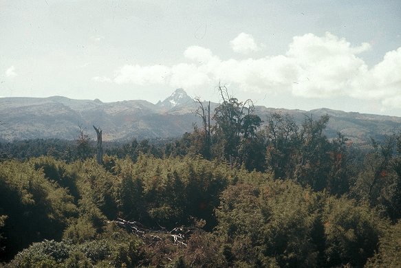 Mount Kenya from the Cirimon Track - the notice warns about the danger of fire and observations towers were erected in the Aberdares to guard against it - PHOTOs the late Jim and Hilda Dixon |
