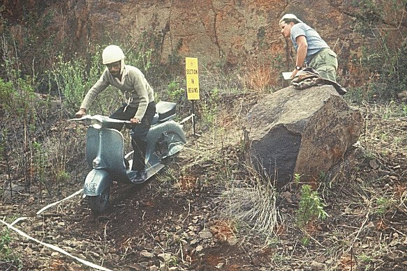 | Nairobi Motorcylce Trials - Soldier competitor on Army motorcycle (above and left); civilian competitors - on scooter (below left) and motor cycle (below) - PHOTOs the late Jim and Hilda Dixon | |||