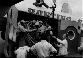 | This was to become a common scene at Embakasi and Entebbe after the introduction of the Britannias (both the 102 and 312) which were, initially, notorious for engine trouble and consequent bad time-keeping. As ever, the faithful Avro York - in this case belonging to Hunting Clan - was used to fly the replacement engine out from the UK. PHOTOs Roger Carman | |||