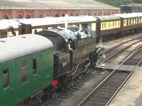 | BR Class 4MT No 80151 arriving from Kingscote - PHOTOs Malcolm McCrow | |