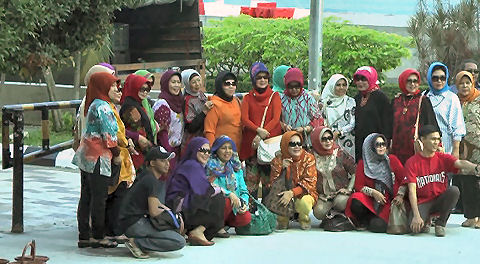 | Traditionally dressed ladies pose for a photograph with the Petronas Towers forming its backdrop - VIDEO CAPTURES Malcolm McCrow | |