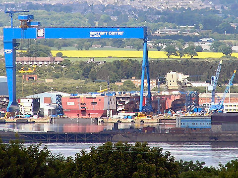 The first of the Royal Navy's aircraft carriers takes shape at BAe Systems' Yard formerly H M Naval Base, Rosyth - PHOTOs Malcolm McCrow | ||