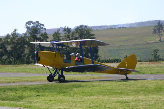 | Tiger Moth ZS-DNR (left) in August 2007 and Boeing Stearman ZS-MIC (right) at Stellenbosch in March 2003 - PHOTOs Steve McLean | |