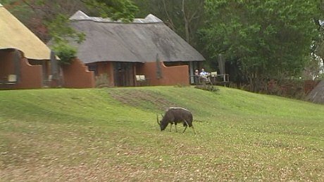| Returning to Camp for lunch we found, not unusually, nyala grazing on the lawn in front of chalets | |||