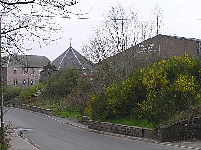 Former Scottish Gas Board offices in North Street (left) viewed from the remains of the railway bridge that led to the coal siding. The gates of the gasworks and the manager's house (right) still survive - PHOTOs © Malcolm McCrow |