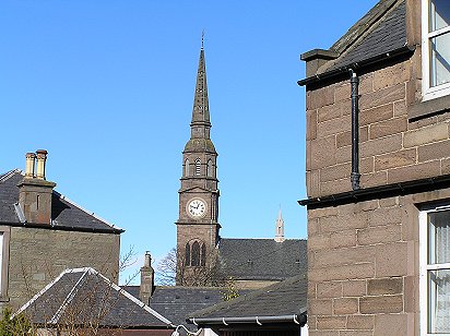 | Steeple from East High Street (left) and from the Vennel (right) - PHOTOs © Malcolm McCrow | |