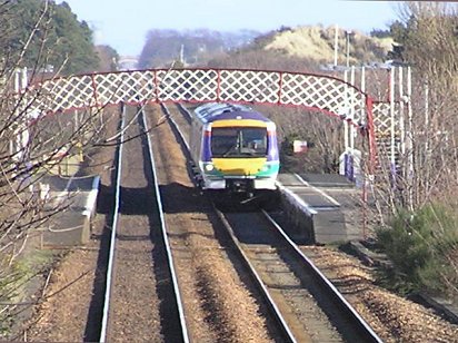 Only the LNER style bridge has survived - the station buildings have been replaced with a bus shelter. The all stations Dundee to Carnoustie train arrives and departs, Wednesday 9 August 2006 - PHOTOs Malcolm McCrow |