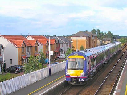 Edinburgh bound Turbostar operated by ScotRail passes through a deserted Monifieth - PHOTOs Malcolm McCrow |