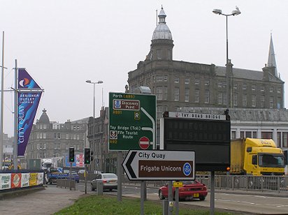 | As at October 2007 the toll plaza is still in operation, but charges on the Tay Road Bridge are scheduled to disappear by 2008. Extensive redevelopment in the former docks area has swept away HMS CAMPERDOWN, the building which was occupied by Tay Division, Royal Naval Reserve. PHOTOs Malcolm McCrow | |