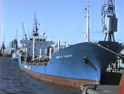 | Soviet motor vessel KAPITAN RADIONOV at Dundee in the 1980s - PHOTOs Malcolm McCrow. Советский теплоход КАПИТАН РАДИОНОВ (КЛАйПЕДА), порт Данди в 1980-х годах - фотографии Малькольм Макро. | |