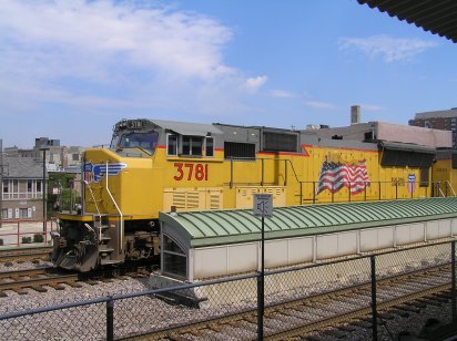 | Harlem - at the western terminus of the Green Line with a UP manifest train on the parallel tracks also used by Metra - PHOTOs Malcolm McCrow | |||||