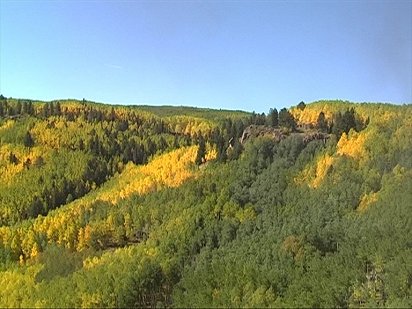 Hoodoos and colorful trees under a Colorado Sky as the train weaves across the New Mexico and Colorado state line - PHOTOs Malcolm McCrow. |
