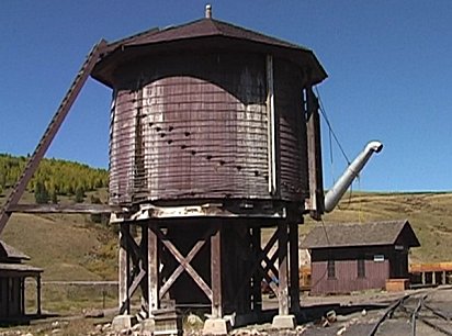 On departure the train is soon crossing Hangman's Trestle (left) where a convicted criminal was hanged from the bridge by the local posse; the train then continues to Lava Loop and past the disused Lava Tank (right). The loop is used for turning snowplows in winter - PHOTOs Malcolm McCrow. |