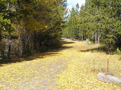 | Colter Bay Marina was shuttered, but there was time for a walk along its leaf strewn paths - PHOTOs Malcolm McCrow | |