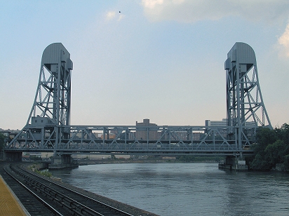 Metro North train approaching Marble Hill (left); Marble Hill Bridge (right) - VIDEO CAPTUREs Malcolm McCrow |
