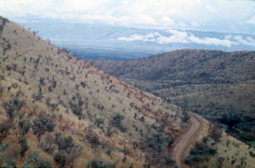 The Ruwenzori Mountains form the backdrop to civil servants' houses in Fort Portal. Our house and garden - 1959. PHOTOs (left) John McCrow. Some fifty years later and a view of the Ruwenzoris taken from near the houses shown on the left. - PHOTO (above) Roger Steedan |
