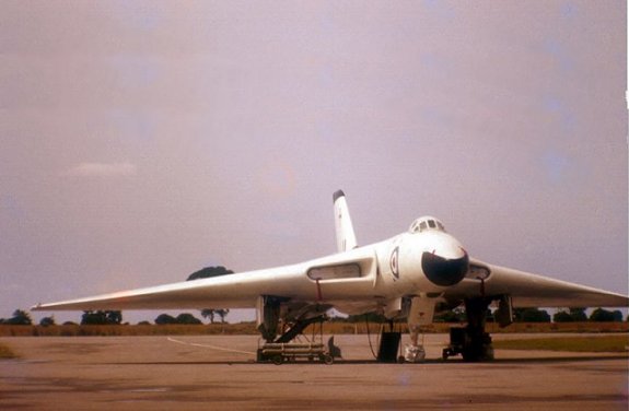 UK Air Force Avro Vulcan parked on the taxiway leading to Runway 12/30. PHOTO John Garside