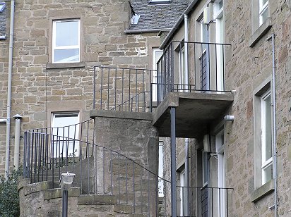 A Lochee high rise block - the unguarded ladder demands a head for heights - PHOTOs Malcolm McCrow |